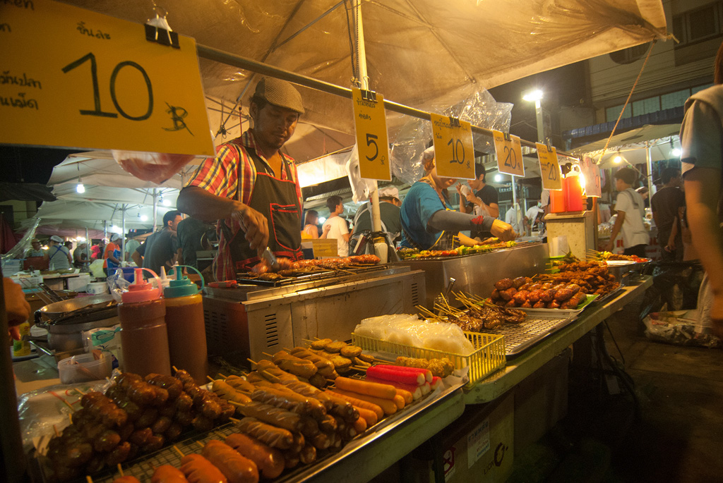 An incredible selection of Thai and International streetfood. Just wander around and see all the BBQ'd seafood, thai salads, omellettes, kebabs, sushi, potato twists to name buy a few. There are also lots of stalls selling souvenirs and crafts.