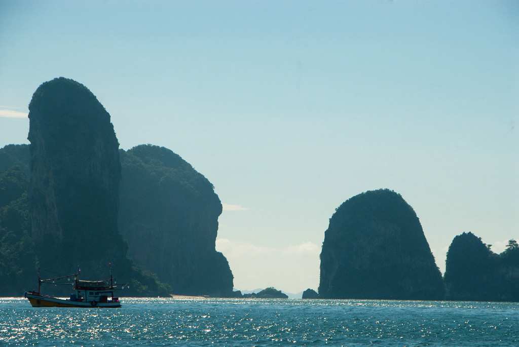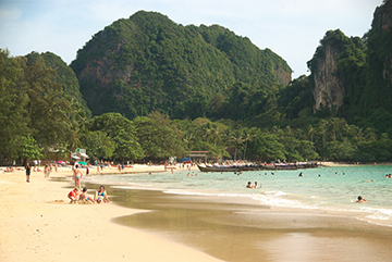 Head south of the energetic Ao Nang Beach, and the tranquil coast of Railay Beach welcomes you. Now a region that includes four beaches, it offers tourists the splendid views of white sandy shorelines and melodic lapping waves, and limestone cliffs attract rock climbers all year round. What makes this beach special, is that the only way in and out is a boat. It takes 15 minutes by longtail boat and costs around 100 baht each way per person, you can get there from Ao Nang beach, Nopparat Thara beach or Klong Muang beach… just look out for the long tail boats.